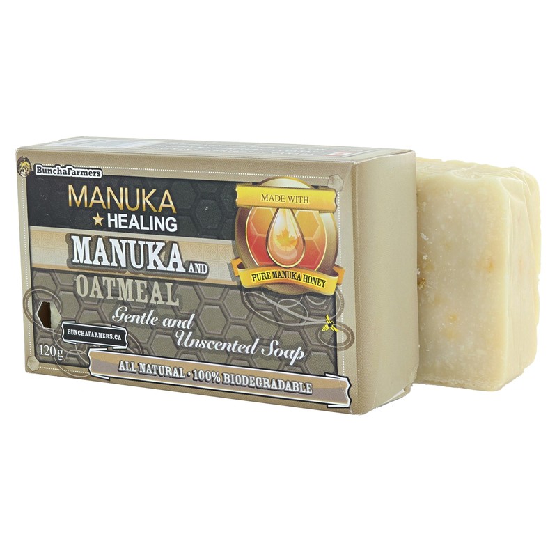 BunchaFarmers All Natural 100% Biodegradable Healing Manuka Honey and Oatmeal Gentle and Unscented Soap Bar (Made in Canada)