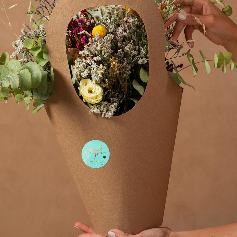 - Elegant Design: Featuring a vibrant teal background with luxurious gold foil text, these stickers add a stylish and sophisticated accent to your packaging