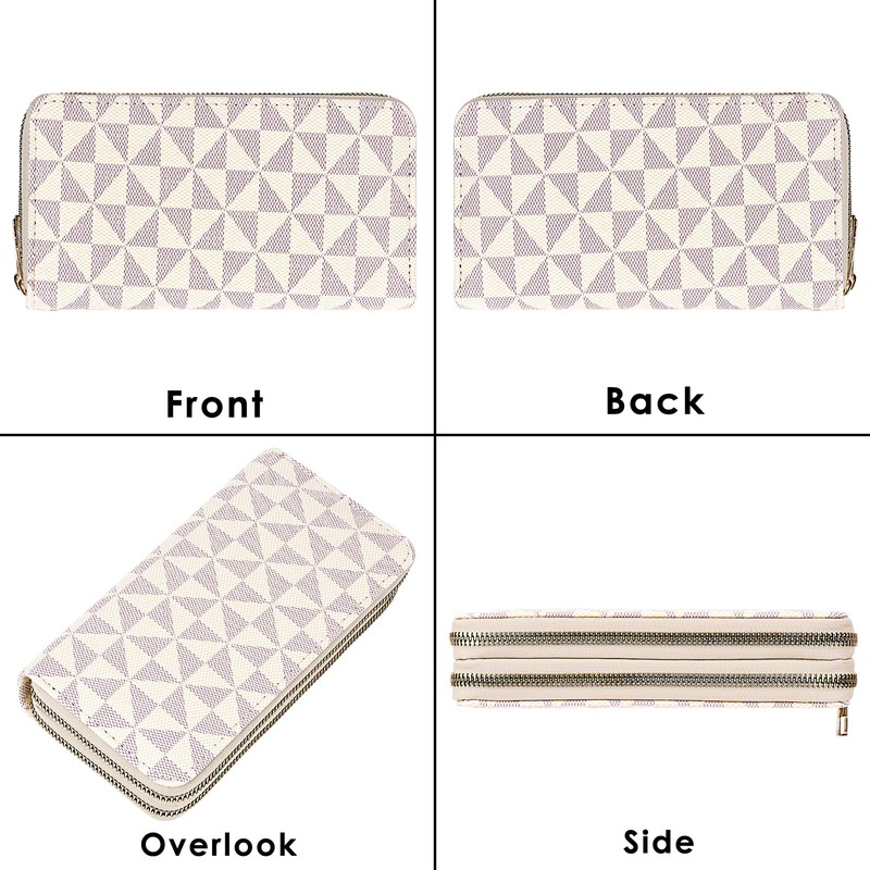 BUNCHBRAVO Geometric Pattern Wallet, Double Zipper Pockets, Creative Checkered PU Leather Cellphone Purse Credit Card Cash Holder, Beige Gray Triangle, 8.2 x 4.3 inches, Classic