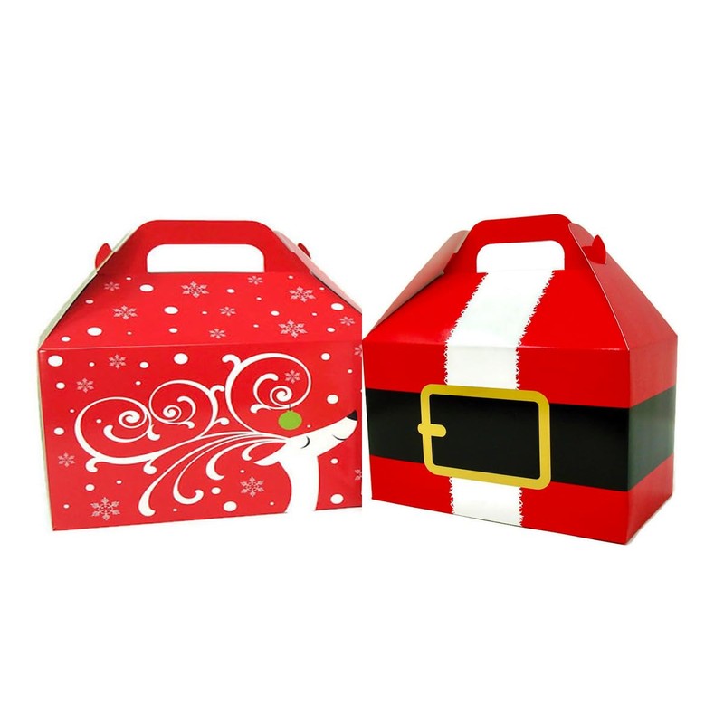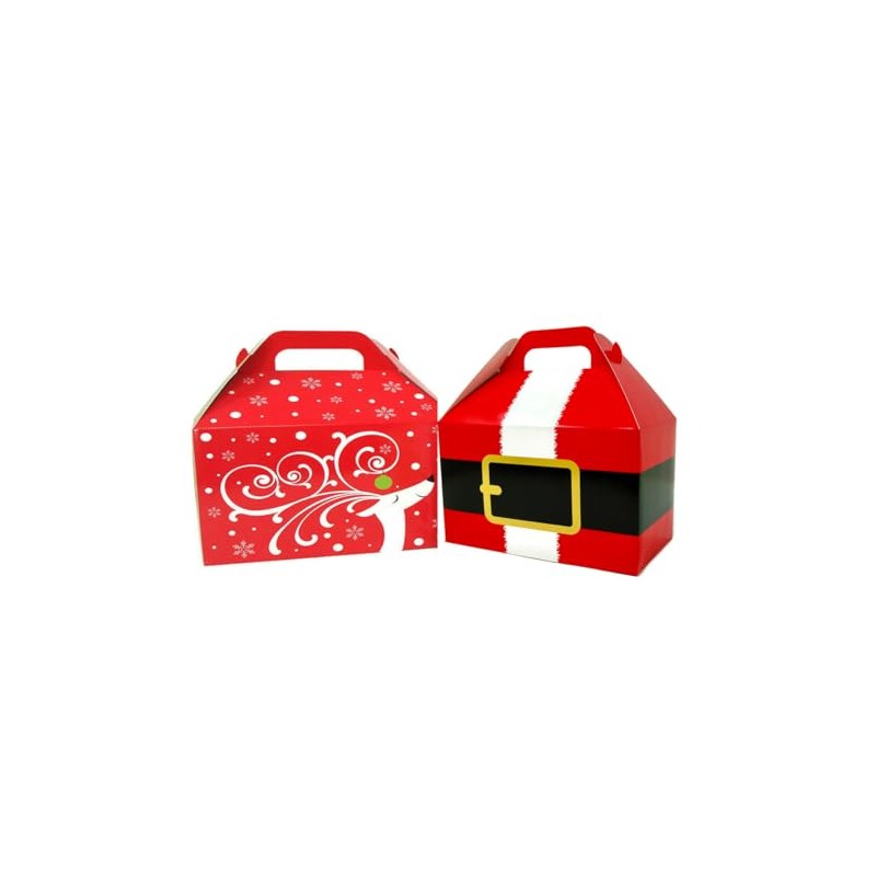 - 2 Each Santa's Belt gable gift boxes measuring 9.5" wide x 5" deep x 5" tall, not including the handle