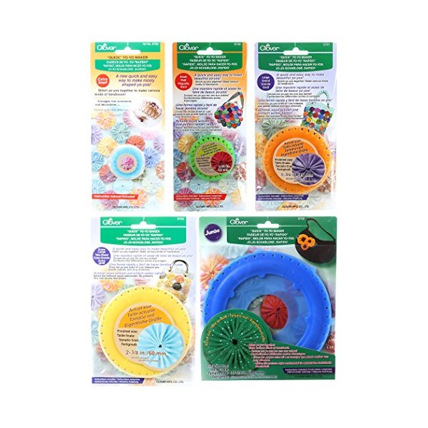 Bundle of Five (5) Quick Yo-Yo Makers: Extra Small (makes 3/4" yo-yos), Small (makes 1.25" yo-yos), Large (makes 1.75" yo-yos), Extra Large (makes 2-3/8" yo-yos), and Jumbo (makes 3.5" yo-yos)
