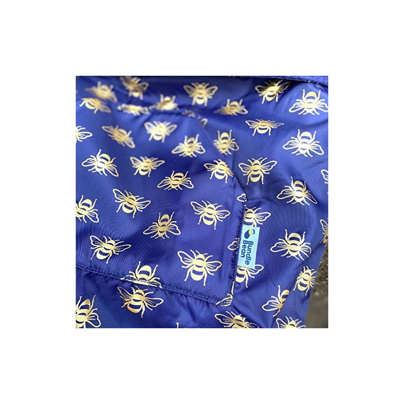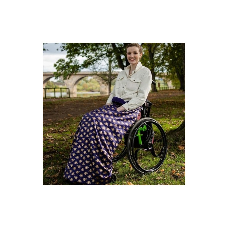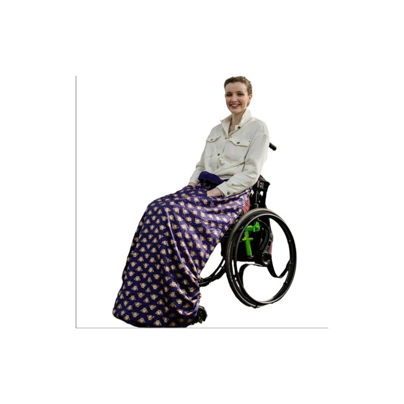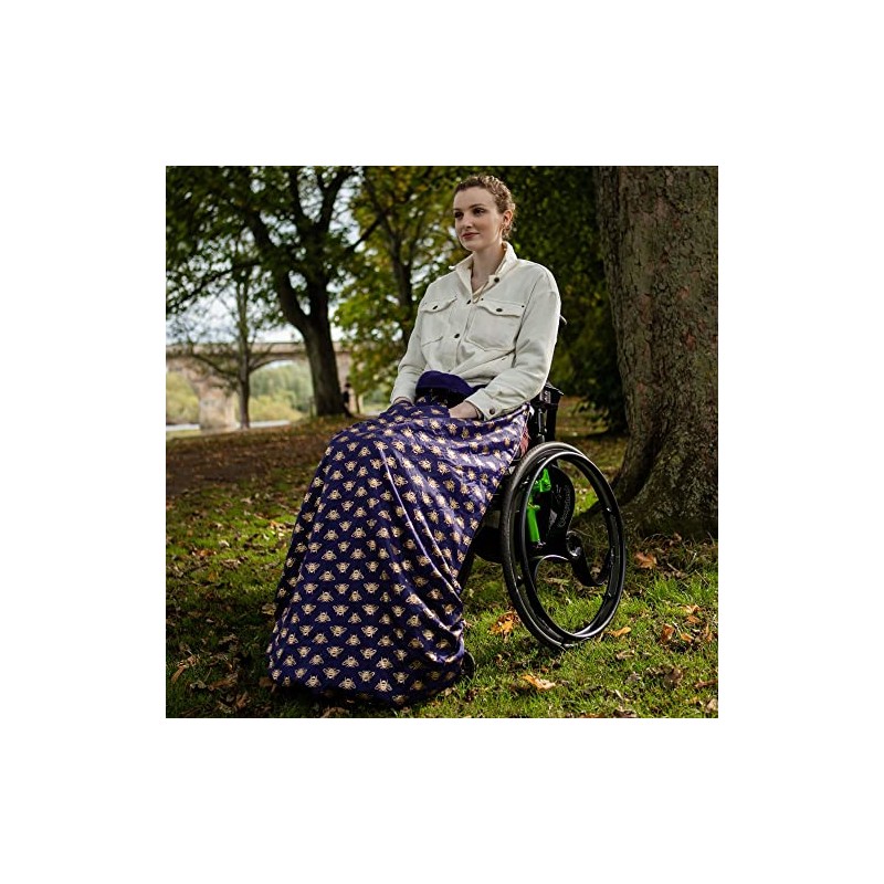 BundleBean XL Large Long Adult Size Fleece-Lined Wheelchair Cosy Cover for plus size and taller wheelchair users - 100% Waterproof Rain Cover for Wheelchairs, Easy to Fit Wheelchair Blanket (Gold Bees)
