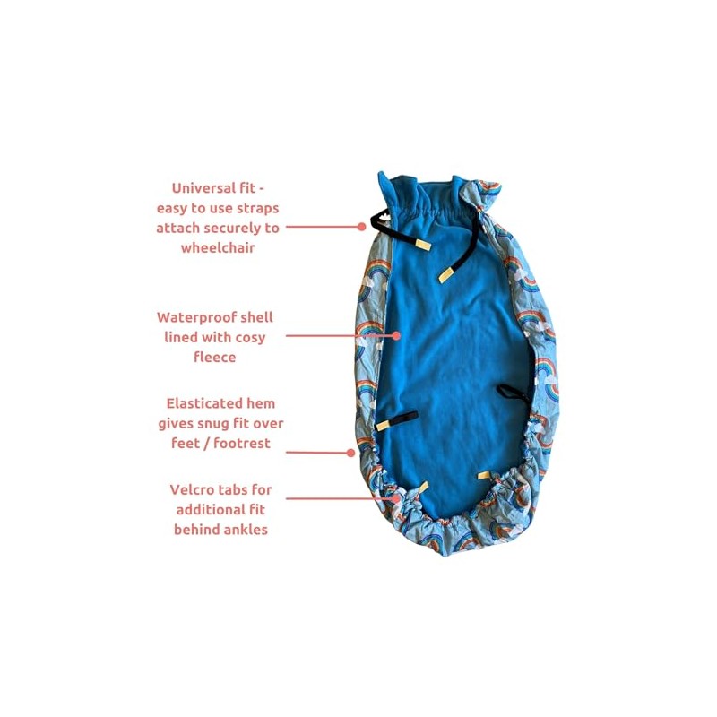 - REASSSURING AND PRACTICAL C this cover has been designed with the wheelchair user's needs in mind: comforting without being too restrictive for sensory issues, can withstand kicking, can be folded down to access PEGs / administer medication, contrast Velcro tabs to help with visual impairment