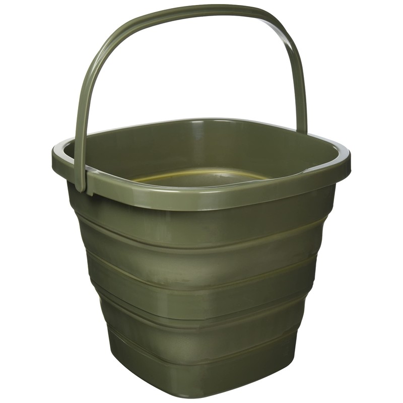 BUNDOK BD-602KA Folding Bucket, 3.2 gal (10 L), Khaki, Folding, Compact Storage
