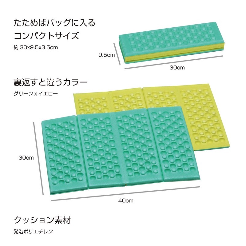 BUNDOK Folding Zabuton Green x Yellow BD-514GY 0.3 inch (8 mm) Thick, Compact (Approx.): 15.7 x 11.8 x 0.7 inches (40 x 30 x 1.8 cm)