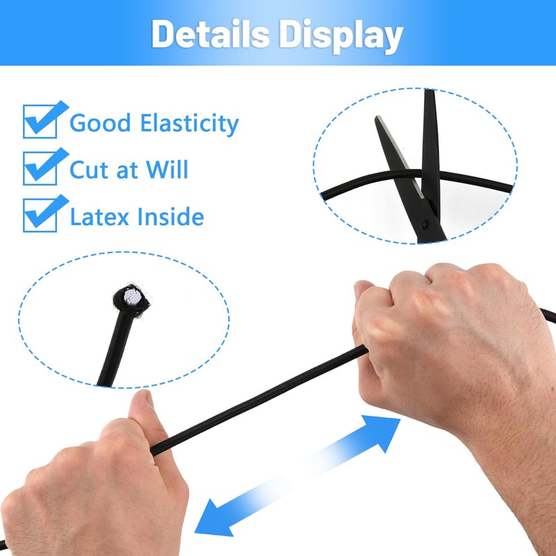 - Elastic Shock Cord: Bungee rope has strong elasticity, it can be stretched according to the size of the objects without breaking or tearing, great for binding or securing objects