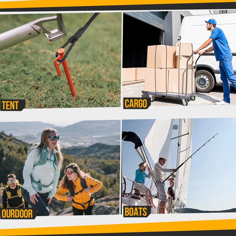 • VERSATILE DESIGN: Set includes one 24-inch heavy-duty bungee cord and three additional carabiner-equipped cords for multiple securing options