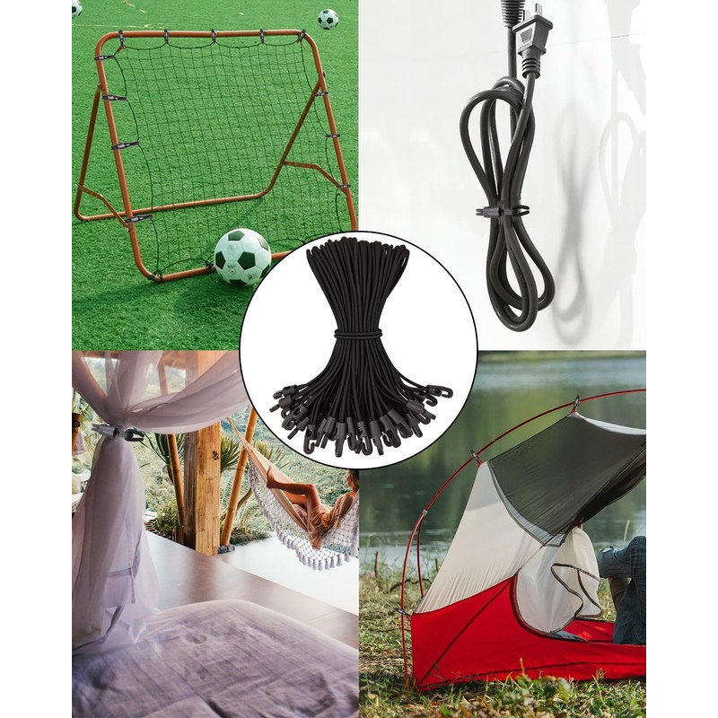 - Small Bungee Cords Occasions: Ours black bungee cords with hooks for tarpaulins, camping, boat shelters, marquees, garden, railing, caravanning, and commercial applications.