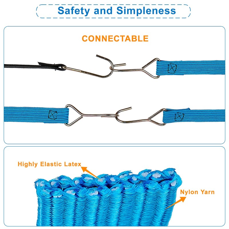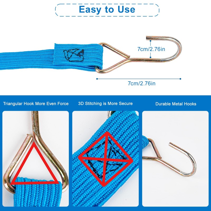 - Easy to Use - Our new elastic rope has a simpler and lighter design, 2 strong triangular hooks on both sides of the rope, rope ends are sewing connection to effectively prevent the hooks from slipping, makes the elastic rope more convenient to use.