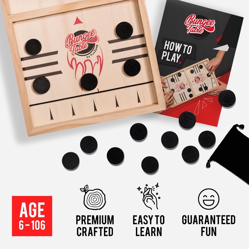 Bungee Table Bungee Table Fast Sling Puck Game - Large Size - Test Your Speed and Accuracy with This Fast-Paced Wooden Air Hockey Board Game - Fun for Family Game Night or Friends Party
