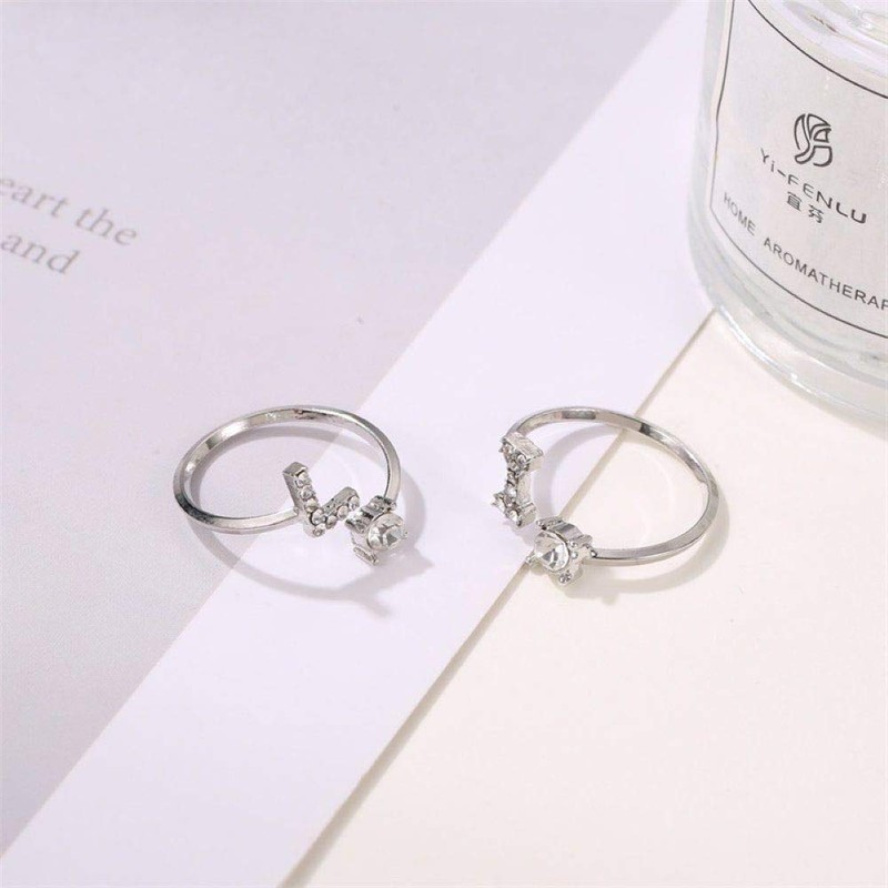 Bungsa® Letter Ring, Silver with Crystals, Bendable Finger Ring / Toe Ring, T...