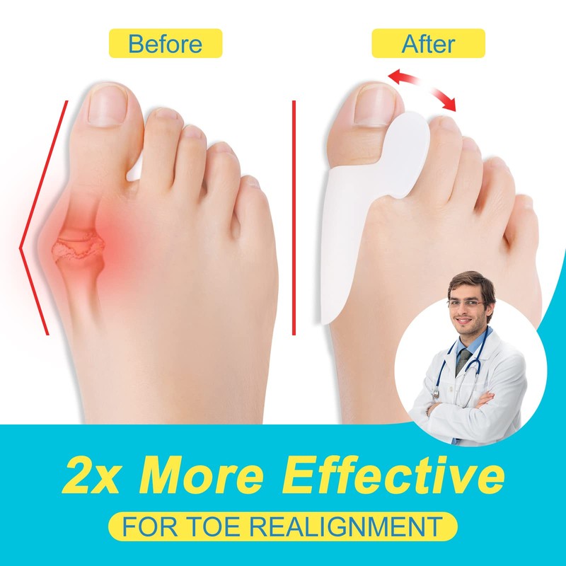 - 【24 HOURS COMFORTABLE CARE】Developed by professional American podiatrists, our bunion corrector conforms to most toe’s shapes and sizes. Fit around your toes comfortably and naturally flexible, allowing you to move with ease. You can wear this bunion pads with most types of shoes. Whether you're active at work, standing, walking, or even hiking, toe spacers stay put and help to relax tense muscles in your toes, provide optimal bunion relief anytime, anywhere.