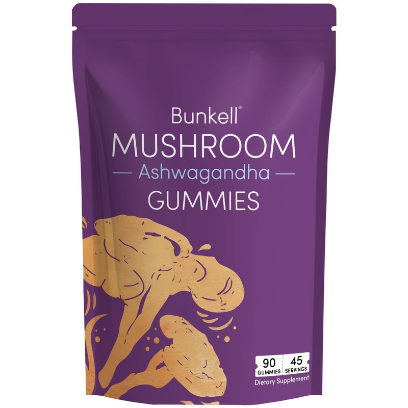 Bunkell Ashwagandha Mushroom Gummies, Organic 7X Mushroom Mix w/ashwagandha - Lion's Mane, Reishi, Chaga & Maitake - Ashwagandha Gummies for Energy, Cognitive & Immune Support, 90 Count