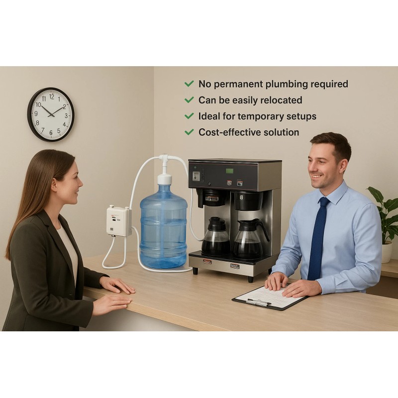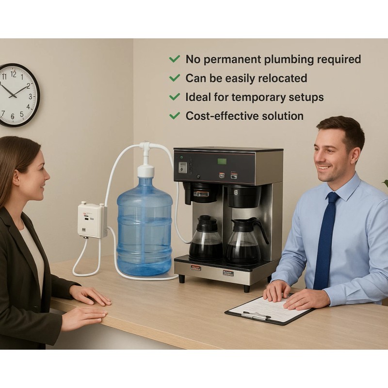 Whether you need clean water for faucets, refrigerators, ice makers, tea machines, or coffee equipment, this pump is your all-in-one solution. Great for offices, breakrooms, food trucks, pop-up events, and any area without plumbing.