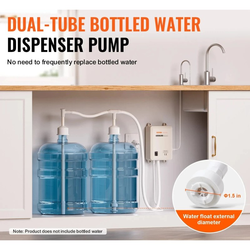 Strong Compatibility — Designed specifically for 2 X 5-gallon bottled water systems (Bottles Not Included). Unlike single-inlet pumps, this dual-inlet pour-through pump keeps your water cycle running efficiently, minimizing bottle swap frequency and maximizing uninterrupted service.