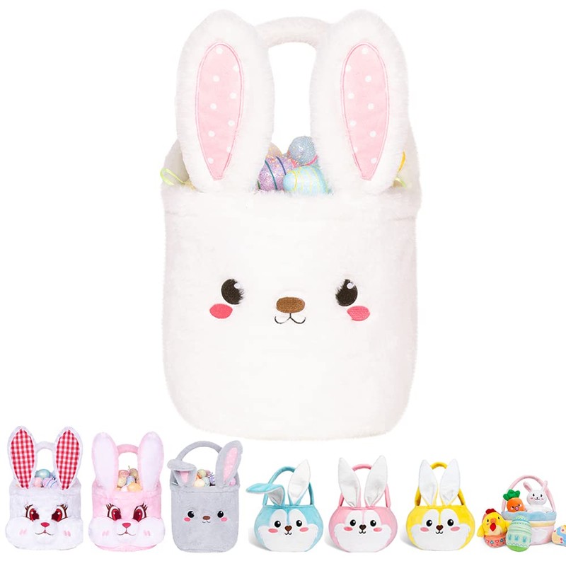 - 🐰 Cute bunny design, vivid embroidered face features with long plush foldable ears, the width of Easter basket handle is 1.5”, sturdy but soft, suitable and safer for boys and girls.
