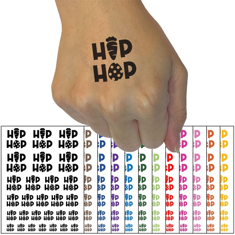 Bunny Hip Hop Carrot and Easter Egg Temporary Tattoo Water Resistant Fake Body Art Set Collection - White (One Sheet)