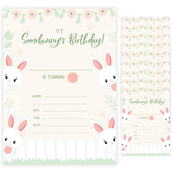 Bunny Rabbit Style 2 Happy Birthday Invitations Invite Cards (10 Count) With Envelopes Boys Girls Kids Party (10ct) by Desert Cactus Store