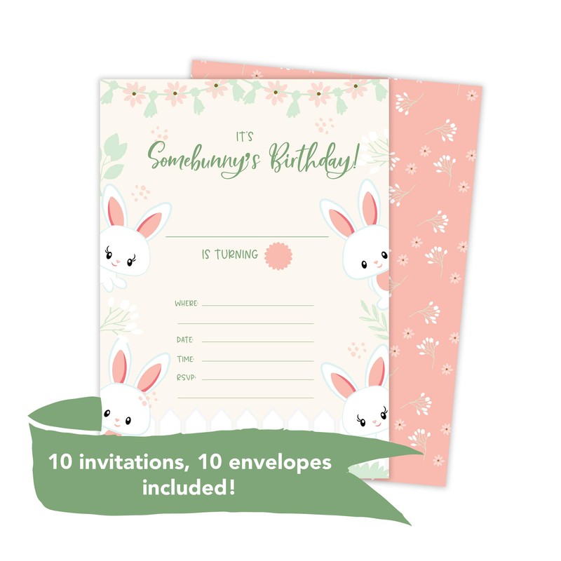 Bunny Rabbit Style 2 Happy Birthday Invitations Invite Cards (10 Count) With Envelopes Boys Girls Kids Party (10ct)
