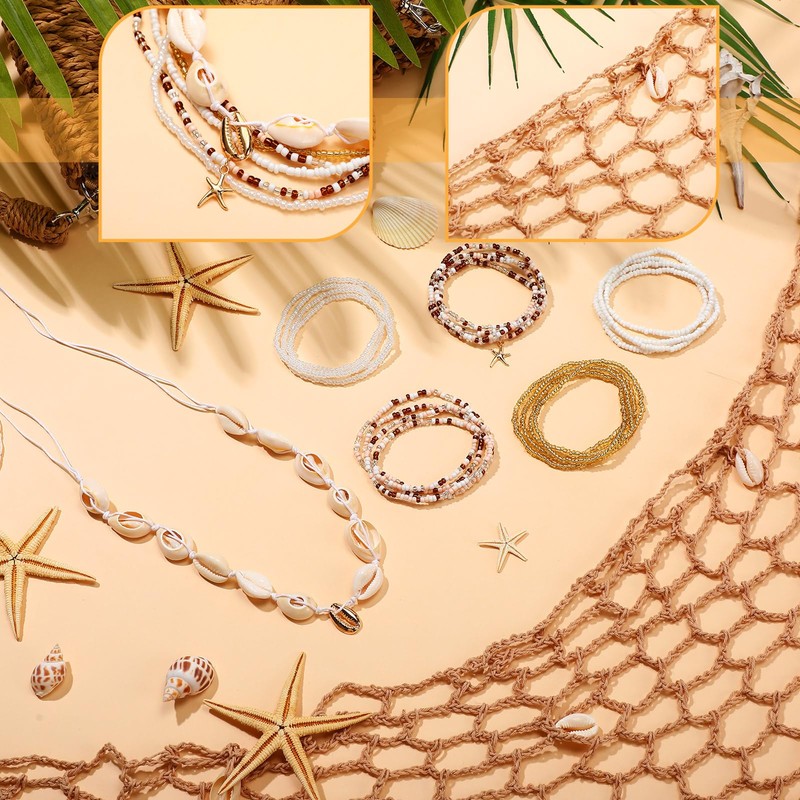 - Mermaid Jewelry Set: designed in Hawaii style, showcases the exotic taste; It includes 1 crochet shawl and 1 starfish body chain, ideal for photo props, cosplay parties, Halloween parties and more; Ideal for swimming wading, pool wrap, salon, beach, swimwear, bikini swimsuit cover ups for women, holiday and many other places