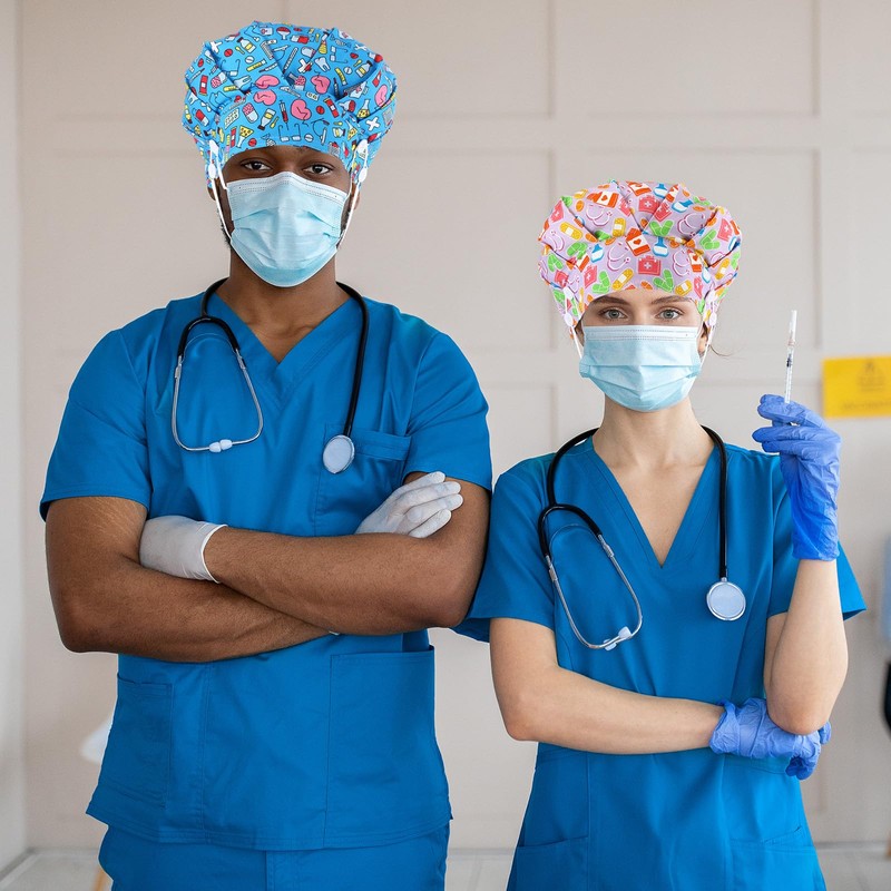 • Quality Material for Comfort and Durability: our bouffant caps with buttons are constructed from cotton; This assures not only durability but also ease of cleaning: an essential aspect for medical attire; The quality of the cotton material also facilitates breathability, ensuring utmost comfort during prolonged working hours