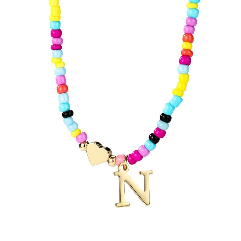 Bunte Perlen-Buchstabenkette für Frauen, Boho Buchstaben-Anhänger Halskette mit Verstellbarer Kette Modisches Alphabet-Choker Geschenk Sommer-Schmuck (N)