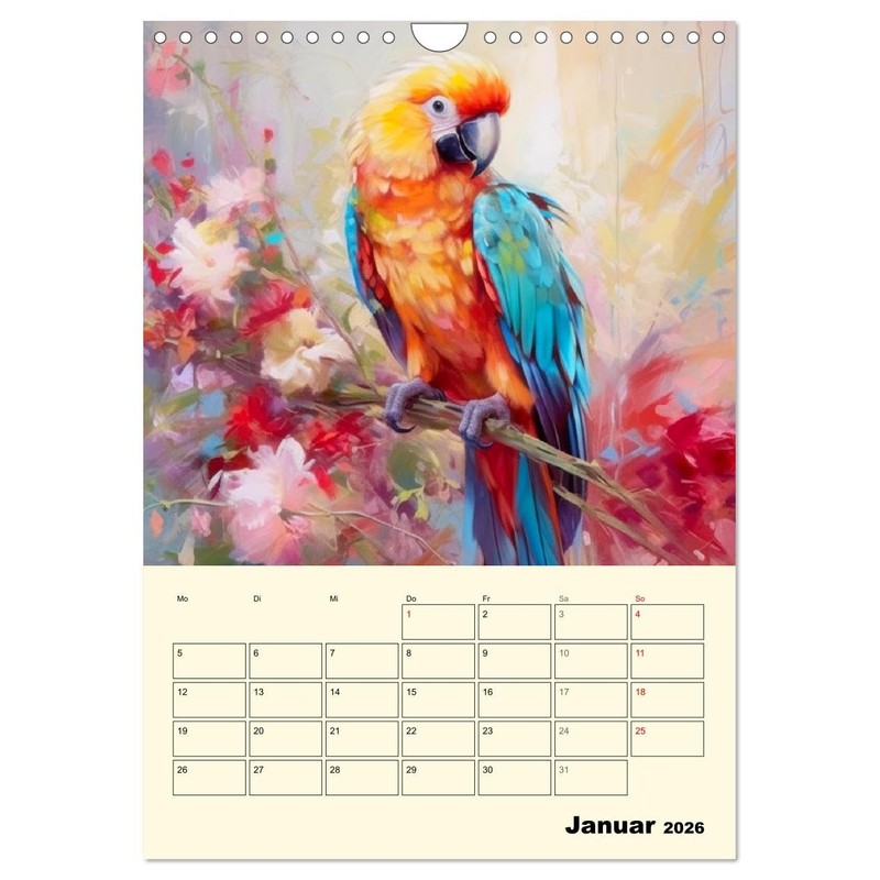 Bunte Vögel. Bezaubernde Papageien-Aquarelle (Wandkalender 2026 DIN A4 hoch), CALVENDO Monatskalender