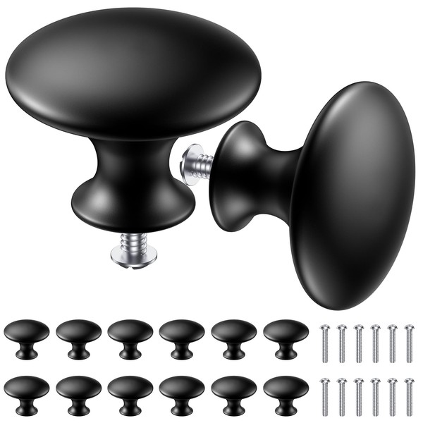 - Package includes: 14PCS - 33mm round black wardrobe knobs and 14PCS - 26mm screws, these kitchen door knobs resist rust, corrosion that outlasts your furniture.