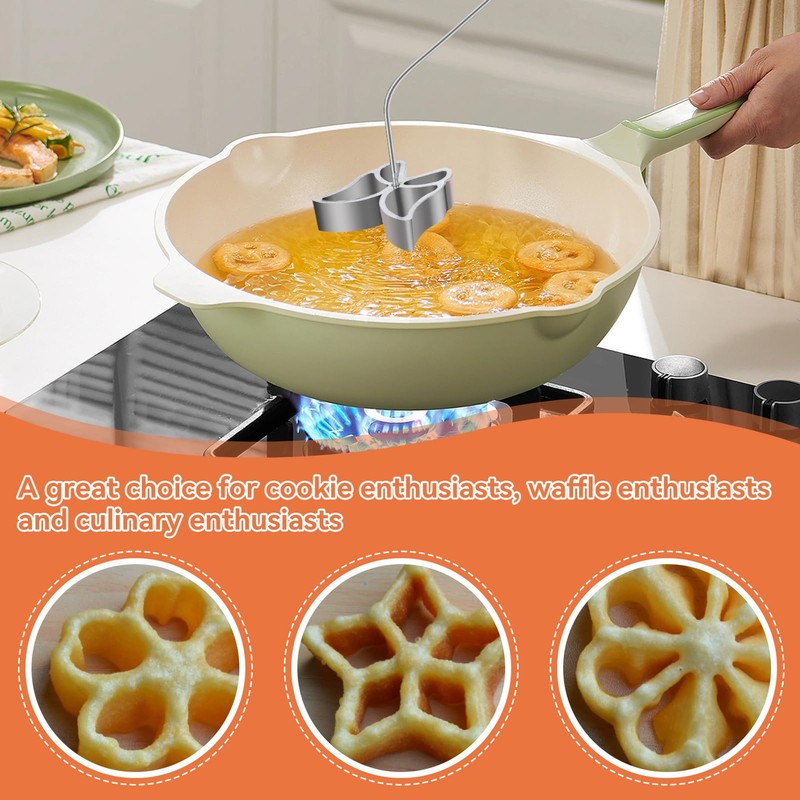 • 🥨 EASY TO USE: Simply dip the cookie cutter molds in the dough, deep fry, and remove to create delicious crispy cookies. Also great for shredded carrot cakes and scallion pancakes. The rosette cutter has flat edges make it easy to cut pastry and dough.