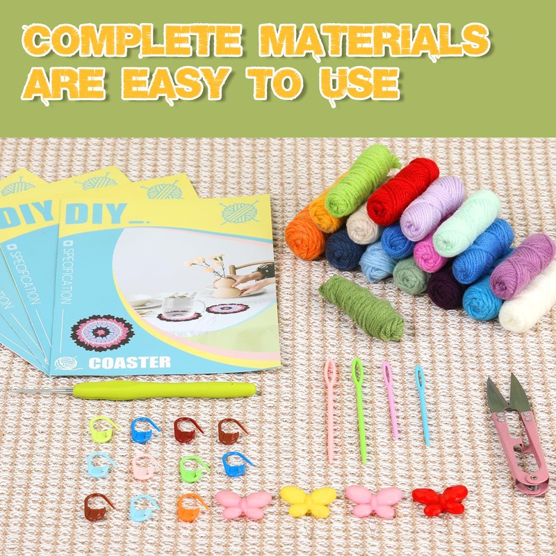 - 【Ideal Gift】Beginner crochet kit is the perfect gift for individuals of all ages who want to embark on a crochet journey. Whether you're a curious beginner or an experienced crafter, this beginner crochet kit for adults contains everything you need to create your first crochet masterpiece. Once you've completed your adorable crochet coaster, they make fantastic gifts for your loved ones.