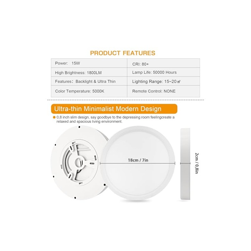- Wirtschaftlich und Minimalistisch Diese Deckenleuchte wurde entwickelt, um eine wirtschaftliche und qualitativ hochwertige Beleuchtungsl?sung zu bieten. Sie verzichtet auf berflssige Elemente und liefert ein beruhigendes, wei?es Licht von 5000K.