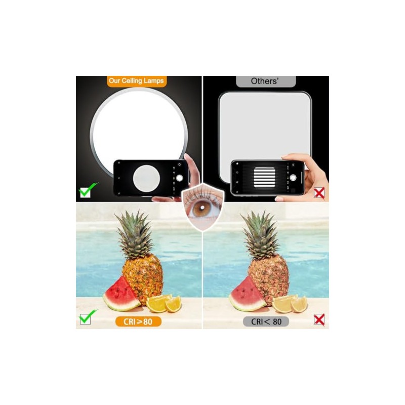 - Augenschonend & Flimmerfrei Die LED-Deckenleuchte bietet einen Farbwiedergabeindex (CRI) von ber 80, der Farben natrlicher und angenehmer fr die Augen erscheinen l?sst. Dank des durchdachten Designs strahlt die Leuchte ein gleichm??iges, blendfreies und flimmerfreies Licht aus, das ?u?erst augenfreundlich ist.