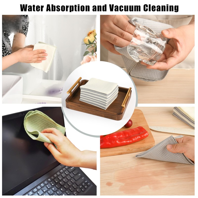 - MULTIFUNCTIONAL AND EASY TO CLEAN: The reusable kitchen napkins can be used wet or dry on a variety of surfaces such as porcelain, glass, metal, wood, plastic, leather and more. Perfect for use in your home kitchen, dining room, living room, den, bedroom, and the exterior or interior of your car. After use, simply rinse the dish towels or throw them in the washing machine as they are completely safe.