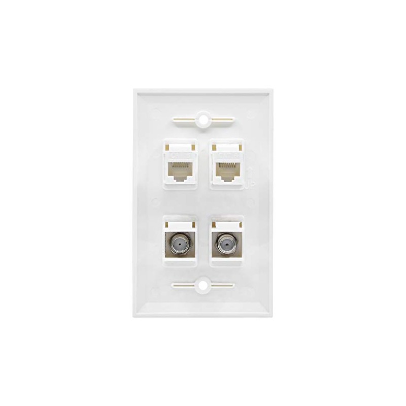 BUPLDET 2 Ethernet 2 Coax Wall Plate - Double Cat6 Ethernet Jacks and Dual Co...
