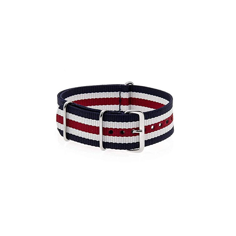 Buran01 VK com Military Nylon Watch Strap Blue/White/Red 20 mm Watch Strap, Blue/White/Red, Strap.