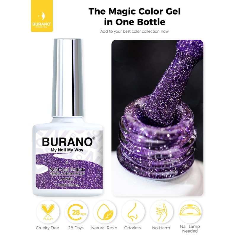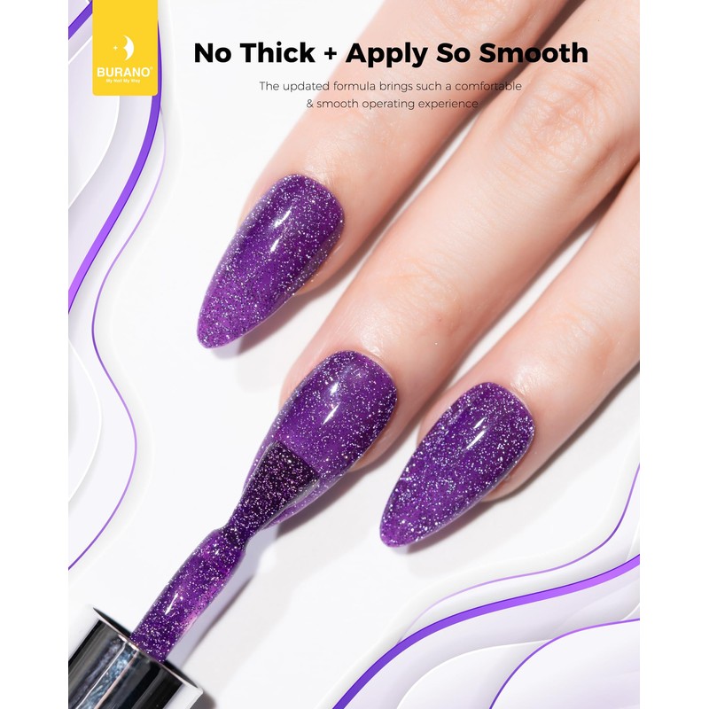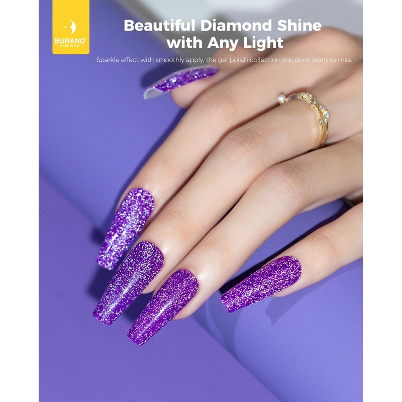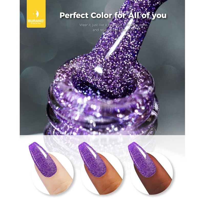 - Long Lasting For 21 Days: BURANO reflective glitter gel polish can last 21 days for your nail, gel polish colors diamond effects, no lifting, no damage sparkle colors nail polish, diamond polish for nails glitter nail gel polish
