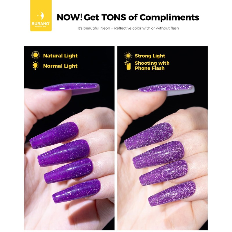 - Sparkly and Glittery Appearance: This is BURANO upgraded version glitter volors reflective Nail Polish, Shining like diamond,diamond polish for nails, expecially under light or in flash light