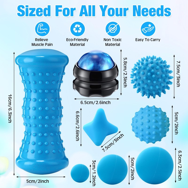 - Effective Muscle Tension Relief: the massage ball kit is designed to increase blood flow and tissue moisture, ease muscle knots and tension, and reduce muscle pain; Using massage balls of different sizes, hardness, and textures, you can effectively target different parts of the body, thereby relieving stress and tension, promoting faster recovery, and improving athletic performance