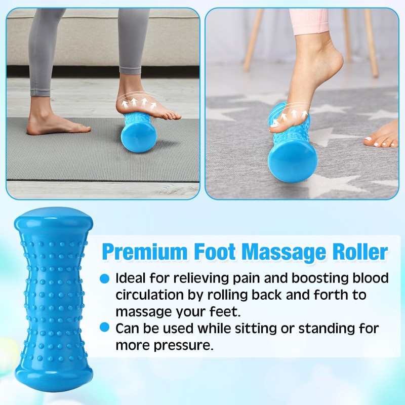 - Comprehensive Massage Ball Set: the massage ball set includes 1 ergonomically designed foot roller, 2 spiked balls(1 hard, 1 soft), 3 different size smooth hockey balls, 1 hand fitness ball, and 1 pcs 360° rotating massage ball with roller, which is ample quantity and complete, catering to individuals interested in tissue massage and myofascial release