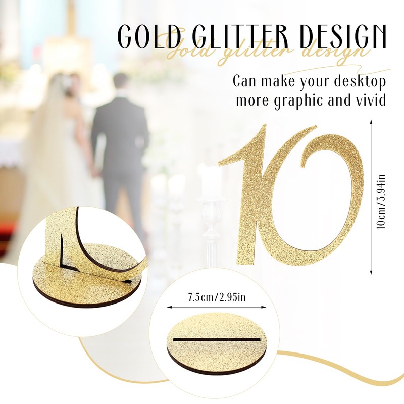 Burbell Glitter Table Numbers 1-25 Wedding Table Numbers Wooden Table Numbers for Wedding Reception Standing Seat Numbers with Holder Base for Wedding Party Event Catering Receptions Banquets (Gold)