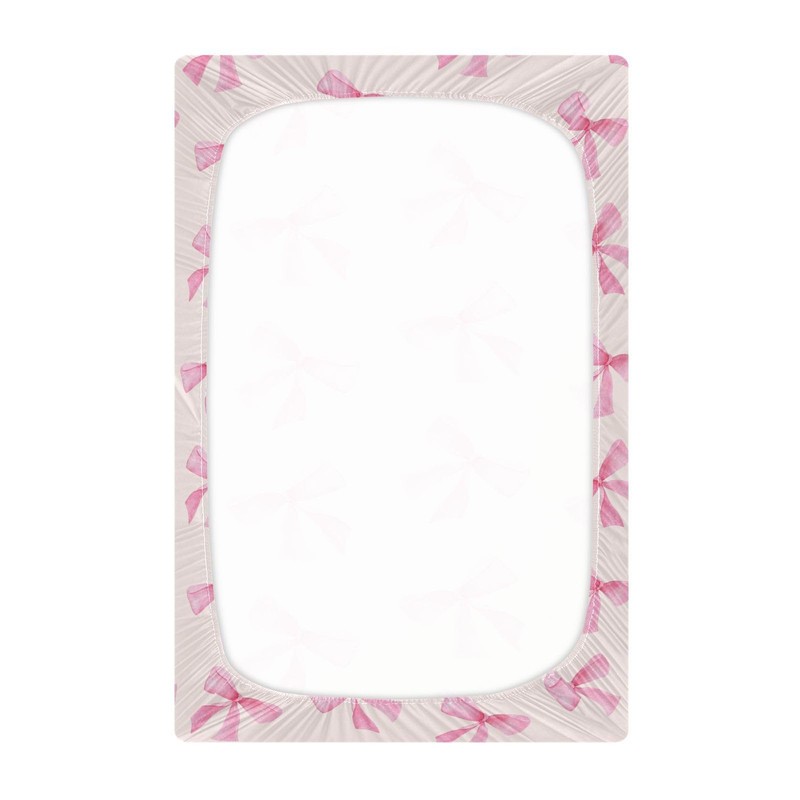 Burbuja Pink Bow Crib Sheet for Boys Girls, Fitted Crib Sheet 28 x 52 in for Standard Crib & Toddler Bed Mattresses, Soft & Breathable