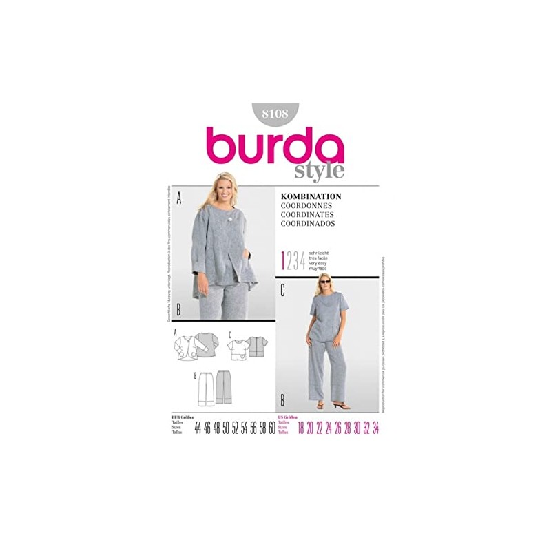 Burda Ladies Plus Sizes Easy Sewing Pattern 8108 Casual Top, Jacket & Pants