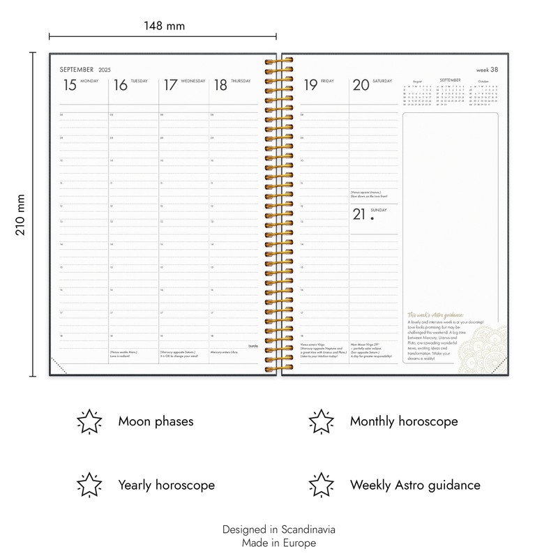 Burde Astrology Diary 2025 | Daily & Weekly planning |Yearly overview | Space for notes | Learn about astrology | Personal Development