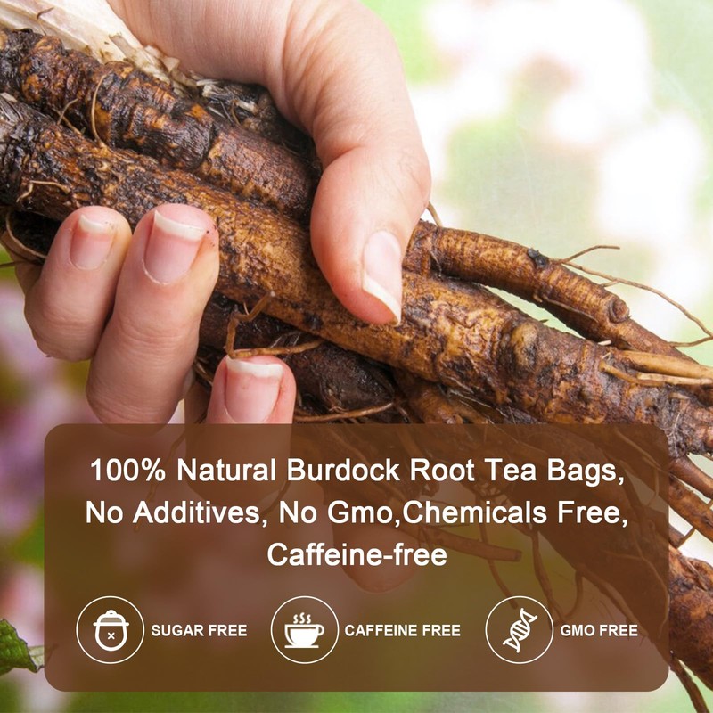 - HIGH QUALITY: We only harvest from wild Burdock Root plants and promise that this is a natural herbal tea without any fillers or additives. Free from string and glue, each teabag is also made of food-grade materials, natural ingredients to bring you a wonderful Burdock Root herbal flavor. This remarkable flavor may surprise and delight your senses. Delicious warm or cold.