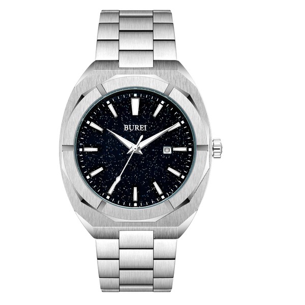 BUREI Men's Analog, Quartz, Simple, Waterproof, Black, Popular, Stylish, Gentleman's Luminous Watch, silver 4, Bracelet Type