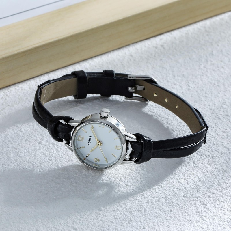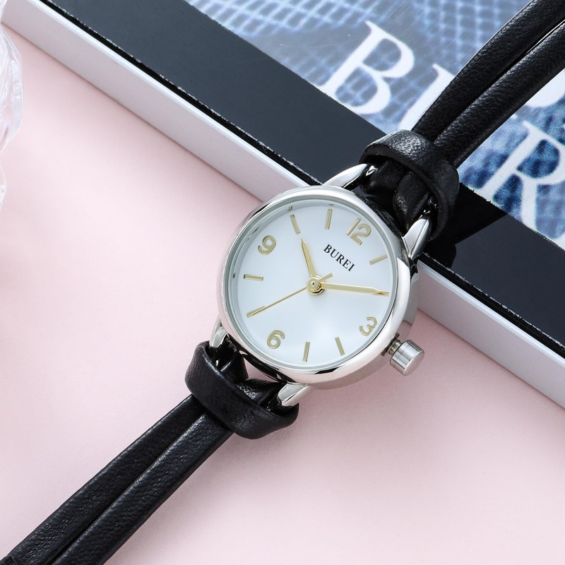 BUREI Mini Women Watches Analogue Quartz Watch Elegant Minimalist Waterproof Wrist Watch with White Dial Analogue Display and Black Strap