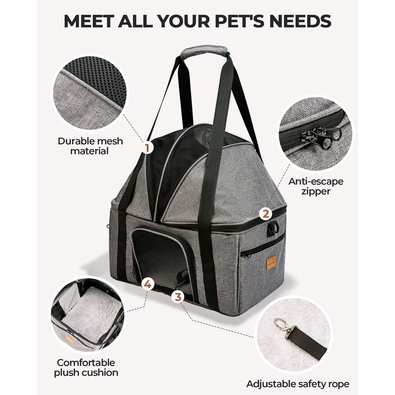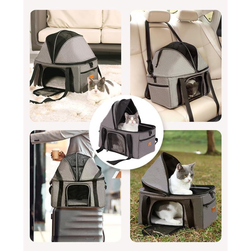 - Multi-Functional & Safety: The travel cat carrier is suitable for daily travel, car seat travel, and go to the pet hospital.There are 2 large-capacity pockets of the cat carrier for large cats, can carry cat's snacks and toys. Equipped a safety belt to prevent cats from getting lost.