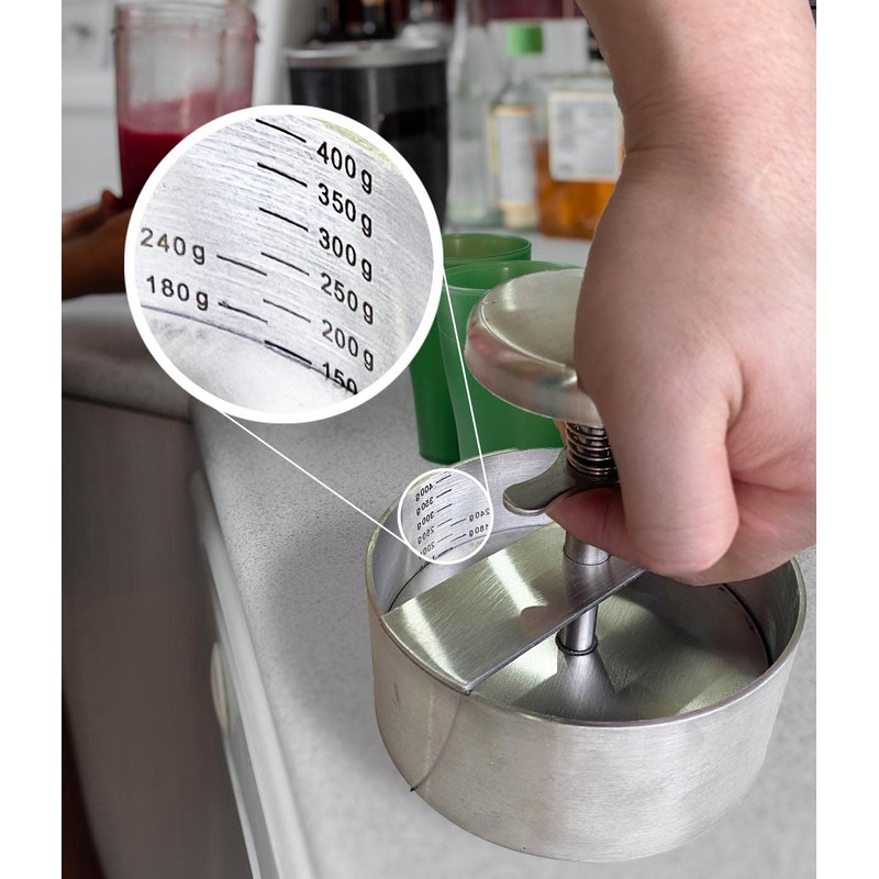 - đăAdjustable Functionă We have 10 scales inside each stainless-steel patty mold, which clearly marks how much meat is needed for each thickness of patties. You can adjust it according to your needs and easily make patties of various sizes, to meet your needs.