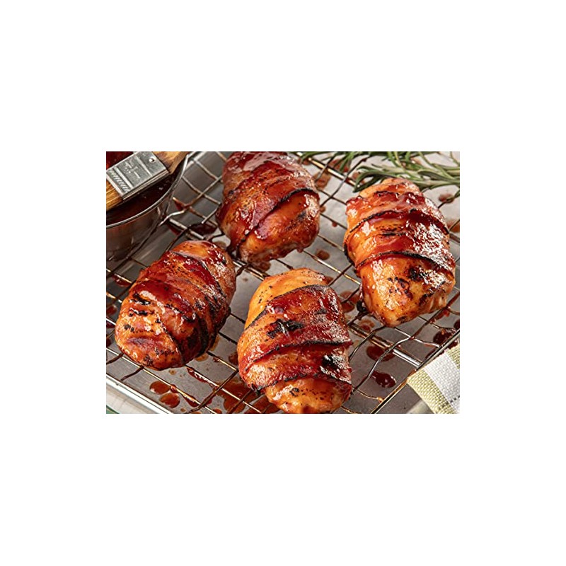 Our Bacon Wrapped Chicken Breast Filets are made from the most select chicken breast. Each high-quality chicken breast filet has been basted with a sweet honey & brown sugar brine, making it tender & juicy on the inside and sweet on the outside. Next, we wrap it with our gourmet hickory smoked, dry cured bacon and package two filets per vacuum sealed package to lock in the freshness and flavor. Upon arrival at your door, keep them frozen and thaw when ready create the best chicken meals & recipes for family and friends! Each filet serves one person.