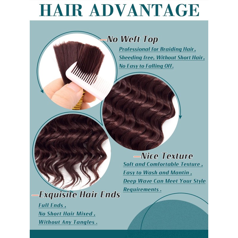 - Advantage: Deep wave braiding hair made of high-quality materials, pre-stretched smooth ends; no smell & no itch; no tangles & no shedding; no weft; skin-friendly; won’t hurt your scalp and easy to maintain